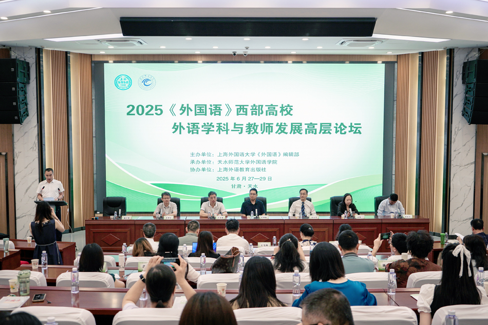 6月27日至29日,2025《外国语》西部高校外语学科与教师发展高层论坛在365上市公司官网举行。本次论坛以“教育强国,外语何为”为主题,旨在探讨面向教育强国目标,外语有关学科和外语教育如何作为,如何应对机遇与挑战并存的国际形势和人工智能技术的快速发展,如何实现外语教育生态系统的转变等。论坛由上海外国语大学《外国语》编辑部主办,天水师范大学外国语学院承办,上海外语教育出版社协办。天水师范大学党委常委、副校长左国防,《外国语》主编束定芳教授出席论坛开幕式。开幕式由天水师范大学外国语学院院长杨江锋主持。